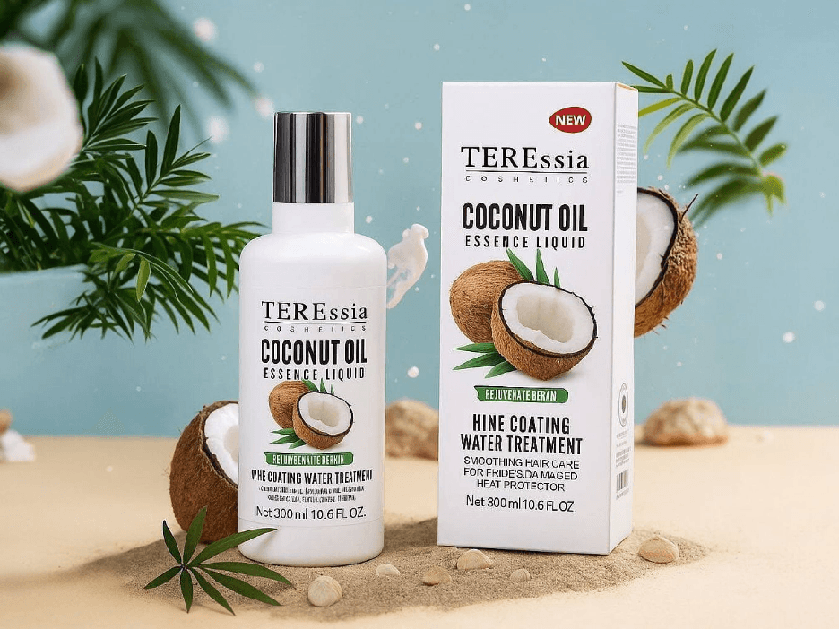 اكتشفي سر الشعر الصحي واللامع مع سائل خلاصة زيت جوز الهند من TERESsIA COSMETICS. هذا المنتج الفريد هو علاج متكامل مصمم خصيصًا لتجديد وإصلاح الشعر التالف، ليمنحكِ خصلات ناعمة كالحرير ومحمية من التلف الحراري.